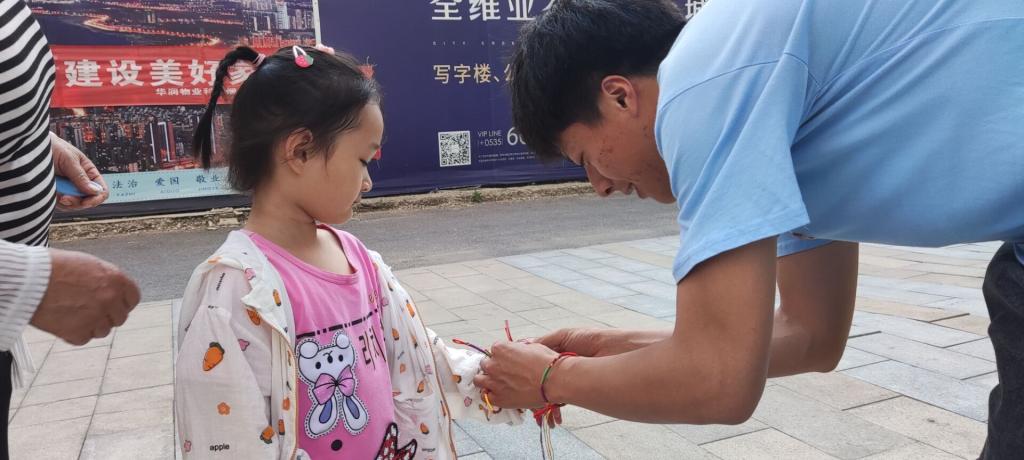 “轻汗微微透碧纨,明朝端午浴芳兰。流香涨腻满晴川,彩线轻缠红玉臂,小符斜挂绿云鬟,佳人相见一千年。”宋代词人苏轼的笔下,就曾出现了端午系五彩绳的习俗。为孩子系五彩绳是端午节的重要习俗,它有祈福纳吉的美好寓意。为了给华润社区的老人和孩子送上祝福,javbus