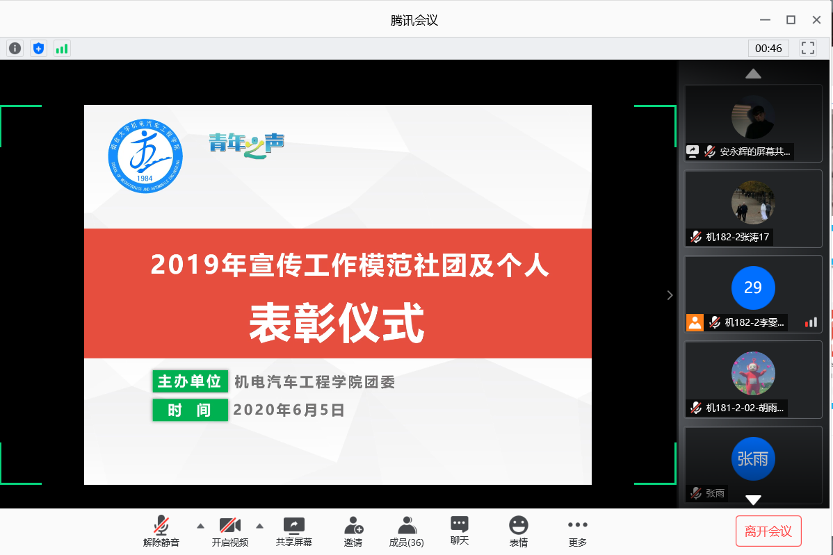 本次线上表彰仪式分为宣传工作总结、宣传工作优秀个人评比、宣传工作模范先锋评比、宣传工作优秀社团评比四个环节并依次有序进行。会议伊始,在主持人安永辉简单对本次表彰仪式进行大体引导介绍后,纪全菊老师结合过去一年学院宣传工作的开展以及在学期末学院宣传工作取得的优良成绩对本学期的宣传工作进行总结与勉励,她希望负责宣传工作的同学们能继往开来,继续创造javbus