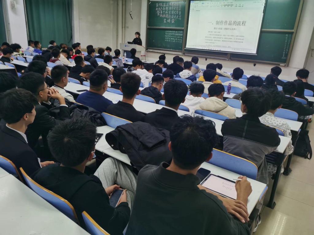 本次宣讲会的主要内容是讲解大赛的相关流程与规则,为日后同学们参加比赛扫清障碍。活动伊始,工作人员为大家播放了一段介绍往届优秀参赛作品的开场视频,吸引了在场同学们的兴趣。随后,讲解员孟祥明上台为同学们讲解,从比赛流程、参赛规则、评审原则等方面对大赛进行详细解析,同学们认真倾听,同时通过拍照、记笔记的方式记录下重点。接下来,往届优秀参赛队员代表田旭和李格依次上台向同学们传授比赛经验,他们从自身经历出发,详细讲述了从前期组队到中期实物制作、再到后期答辩等一系列流程。他们鼓励大家关注日常,在日常生活中寻找灵感,进行大胆创新,创意初具雏形后主动与老师进行沟通,将创意进一步完善。最后,他们还向同学们介绍了建模、编程、视频制作时需要用到的软件,生动的讲解不时赢得同学们的阵阵掌声。至比,本次宣讲会圆满结束。