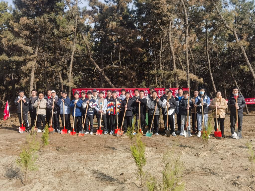 30余名师生代表前往天越湾海水浴场附近开展了义务植树活动。