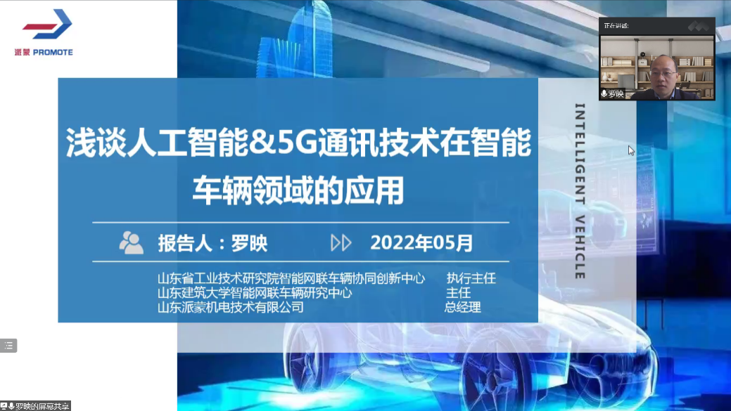 第三场学术报告是由山东建筑大学罗映教授带来的“浅谈人工智能&5G通讯技术在智能车辆领域的应用”。罗教授首先介绍了智能网联车辆架构,并从人工智能和5G网联展开,重点讲解了在智能座舱、无人驾驶和车路协同等方面的应用情况,最后介绍了团队在智能网联车辆产学研平台建设和关键零部件5G-V2X开发取得的最新成果。