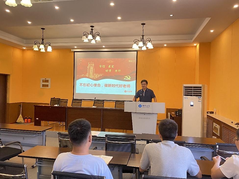 学院教学秘书杨文广老师结合自身助教培养经历,为新入职教师重点讲解了学校的青年助教培养制度。他分享了自己在助教培养过程中,在备课听课、期满考核等方面经验,希望全体新入职教师尽快站稳讲台、努力取得新的教学科研成果。