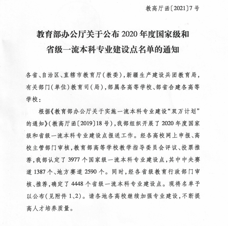 近日,教育部办公厅公布2020年度国家级和省级一流本科专业建设点名单(教高厅函〔2021〕7号),javbus 机械设计制造及其自动化专业入选2020年度国家级一流本科专业建设点!!!