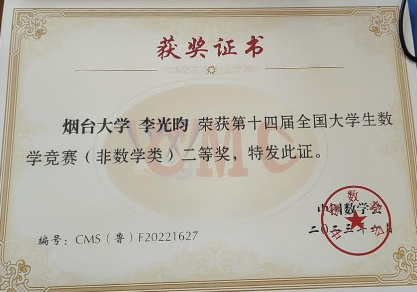 机216-1班李光昀同学荣获了第十四届全国大学生数学竞赛二等奖,他有一些经验想和同学们分享: